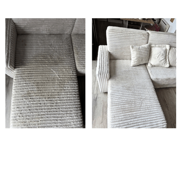 Le nettoyage retire la saleté, les allergènes et une partie des odeurs. Il ne répare pas l’usure (peluchage, abrasion, affaissement de mousse) ni les pertes de couleur par soleil/oxydation. Certaines taches chimiques ou anciennes peuvent rester atténuées mais visibles.